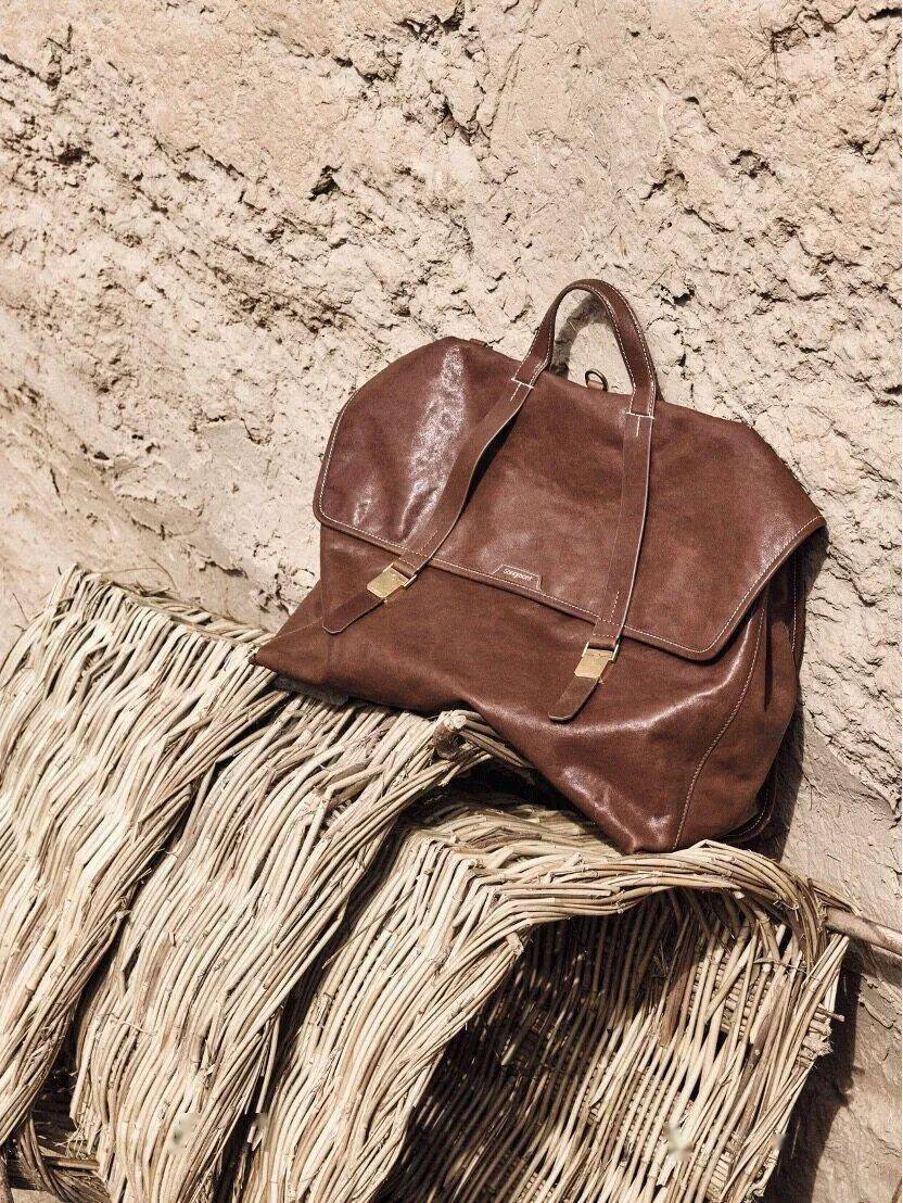 具体到产品端,过去国产品牌普遍售价不高、采用“牛二皮”(往往是牛的绒毛层加上TPU等材质人造而成),山下有松则选用了进口A级的全粒面头层牛皮。“随游”、“浅行hobo”等产品用到的“时光植鞣皮”,通过品牌自研工艺以及对用户需求的洞察,避开了植鞣皮的厚重感,同时做到轻盈、又有立体感与做旧感。